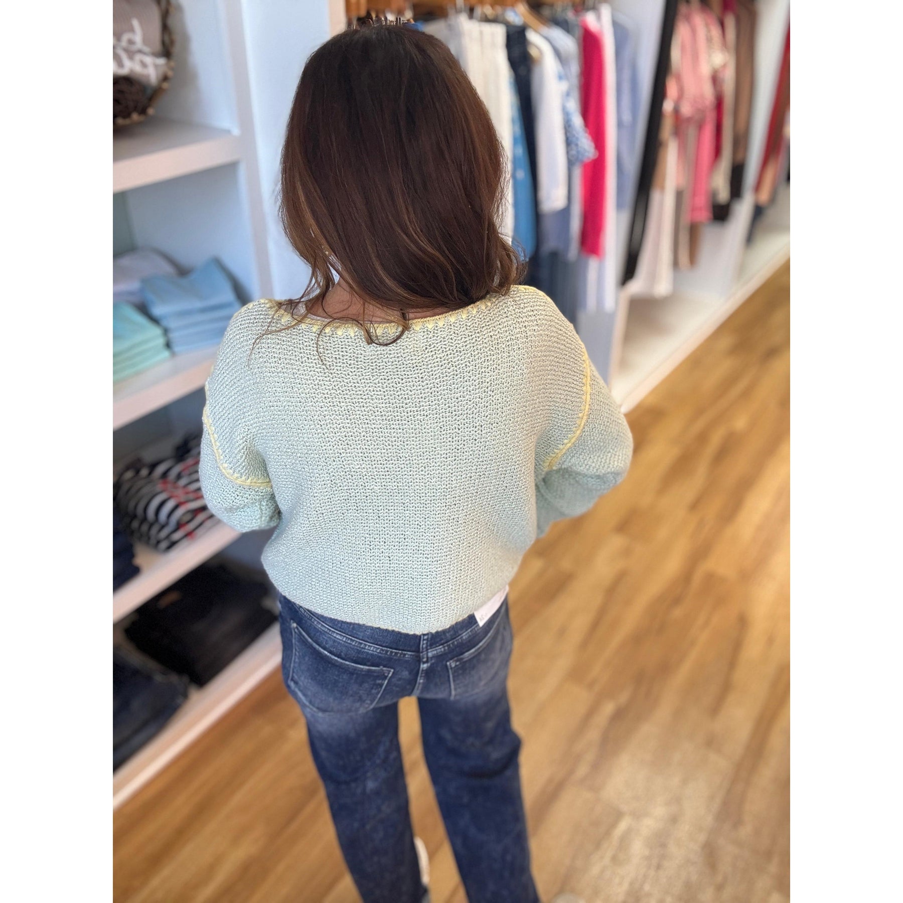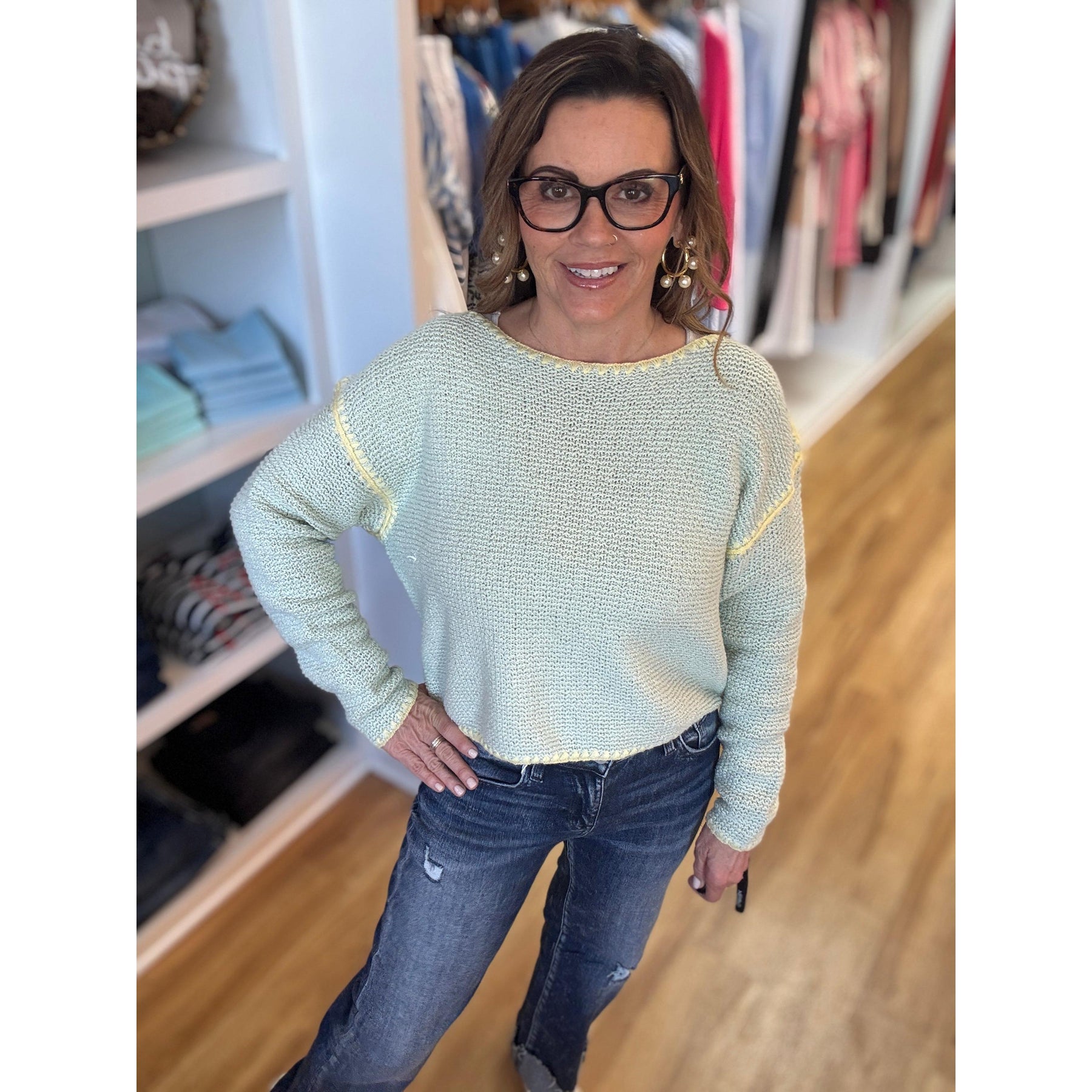 This versatile knit sweater offers effortless styling for any season. The dusty mint colorway brings a fresh, modern touch that pairs beautifully with neutrals and denim alike. Perfect for layering or wearing solo, it's a refined essential that transitions seamlessly from casual weekends to polished everyday looks.